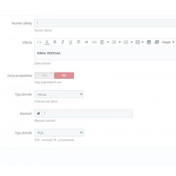 The PDF generator with the offer was written for PrestaShop 1.6-1.7x - 8.x. It contains all the necessary elements that an offer should include as standard. It is based on built-in PrestaShop libraries and allows for easy modification of the template in the module's tpl files. It supports languages and currencies. The offer can include a table with product combinations and features. Store data is retrieved from the settings. The offer itself is secured by a token. Additional options include generating the following from the backend: numbered offers, offers with a changed sales price only in pdf + or -.