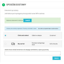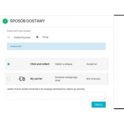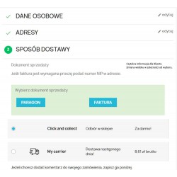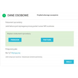Extended version of the receipt invoice module with the functions of downloading customer data from the Central Statistical Office in the order process. The module clearly presents the possibility for the customer of the store to choose a sales document. The default document can be defined in the module configuration. The module for the entire shopping session remembers the Customer's choice. The document change is saved using Ajax technology, which is characterized by the absence of pop-up windows. The module has the possibility of any attachment in the store template, allowing for cooperation with non-standard shopping baskets.