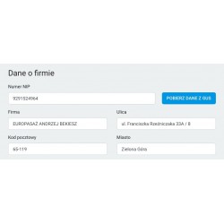 A service that integrates a button to download data from GUS for any shopping cart and lower versions of PrestaShop. To integrate with the GUS database, you will need an API key, access to the store, and FTP or SSH access. All data found in the database for the searched tax identification number is downloaded automatically. The library has built-in tax identification number validation before sending a query to GUS. Use of the keys and system is free of charge.